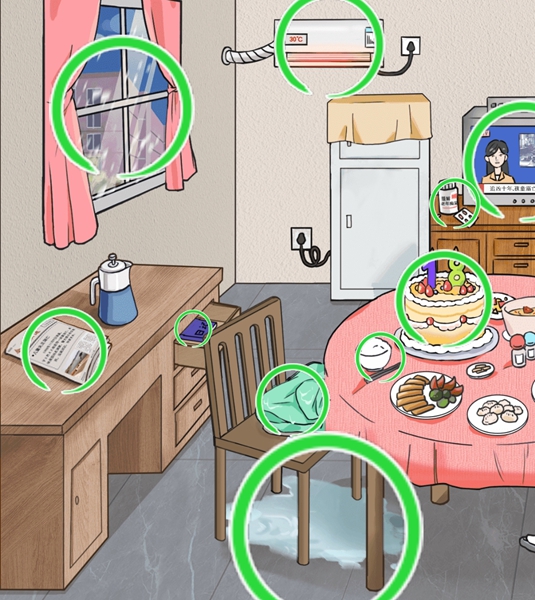 在【父子情深】的图中是父亲在给儿子过生日的图片,但是气氛却有些不对劲,小男孩浑身湿漉漉的,墙上还有小男孩的遗照,根据报纸和日记我们可以得知小男孩已经溺水身亡了。