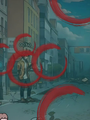 4、切换场景来接小美下班,点击身上流血的小美、小美头上的数字、身后摇摇欲坠的窗户、黑云密布的天气、靠在墙上的男子。