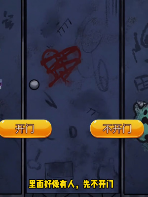 3、接着来到下一个卫生间前发现有人呼救我们选择不理睬,然后我们来到一个充满烟气的卫生间前,出现选项不点击而是点击厕所左侧的红色按钮进行催促即可。