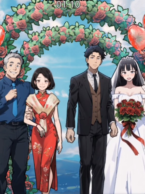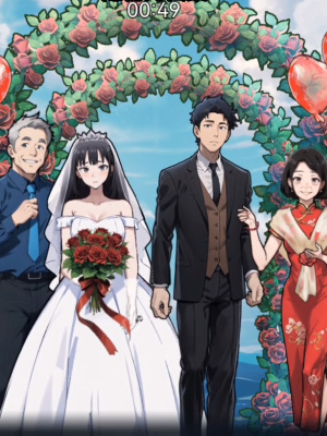 5、最后把婆婆和新娘交还位置点击拍照就能完成通关。