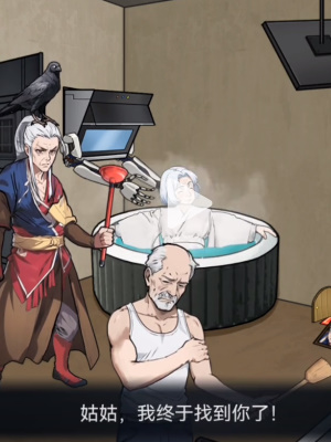 3、再把金币拖动到爷爷的遗像上面让他复活,把钱给爷爷让他开始做饭。