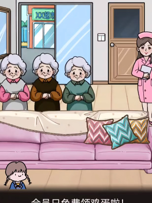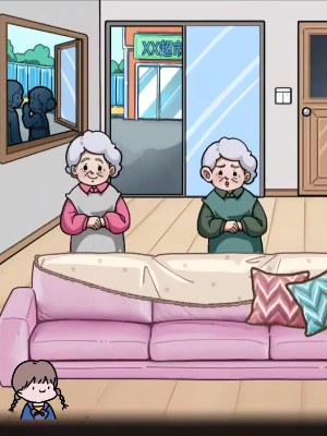 4、最后点击超市打折、开窗户的聊天,沙发上的毛衣拖动给最后一个老奶奶完成通关。