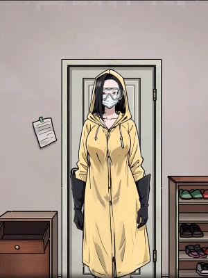 3、再来到卫生间,把橡胶雨衣、手套、鞋子,客厅门口的护目镜抽屉里的口罩全都装备上。