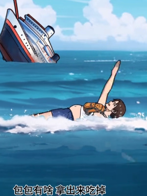 2、再把书包丢进海里,这样能吸引鲨鱼过来为男生提供游泳的动力。