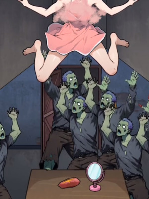 2、把镜子一过来赶走丧尸,再给女生吃地瓜放屁赶走丧尸,再使用手电筒照丧尸,赶走他们。
