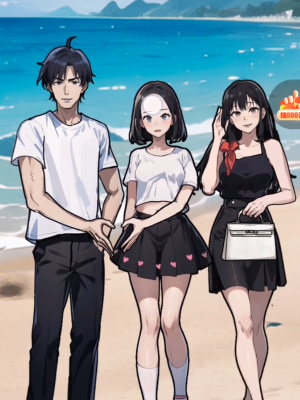 3、最后我们点击中间女生的头发把刘海漏出来,把沙滩上面的螃蟹移动到男生的嘴巴上面,给他剪出嘴唇即可完成通关。