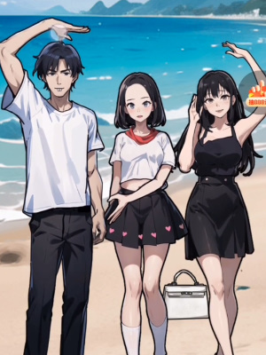 2、点击中间女生脖子上面红色围巾,然后给右边的女生,再把沙滩上面的包和鞋子都给右边的女生。