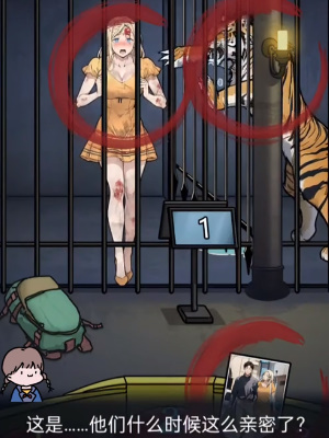 2、来到场景二之后我们再点击:笼子里的妻子和老虎,身前的照片,背包里手机上的聊天信息。