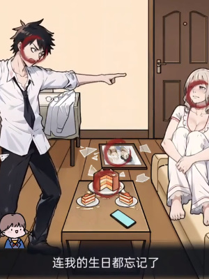 1、首先我们在场景一找到这些诡异点:男生和沙发上的女生,桌子上摔碎的照片、已经吃了一口的蛋糕,手机里的聊天信息,男生裤子口袋里的发票,衣服上的口红。