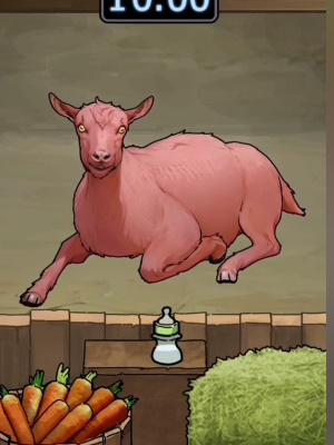 2、来到农场之后,我们点击时钟设置成10点,然后给红山羊吃萝卜、绿色样吃青菜、白色羊喝奶。