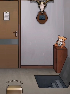 3、回到物资中,点击门上的纸条,然后在用剪刀把玩偶熊剪开查看里面的纸条。