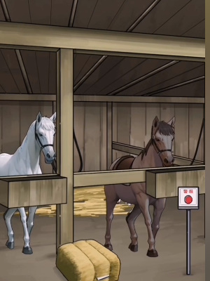 3、来到马场解开马的缰绳,点击查看死羊的尸体,然后将左边的马移动到马圈中挡住羊的尸体。