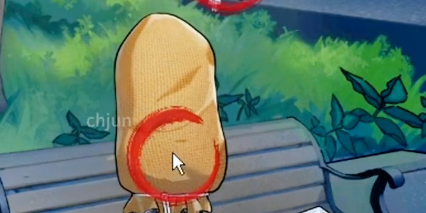 2、出来选项之后我们选择答应,然后来到公园点击:对象的腿,远处的商贩,对象头上的麻袋,椅子上的食物,椅子上的剪刀。