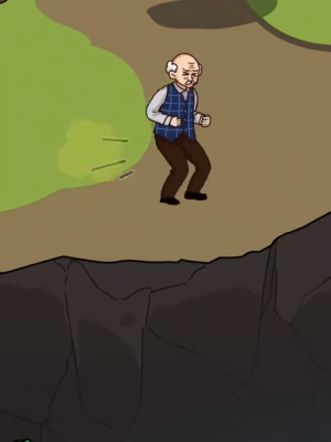 4、把地下的拐杖组装起来帮助老爷爷完成通关,最后把炒板栗给最后一位老爷爷,让他放屁通关悬崖,完成通关。