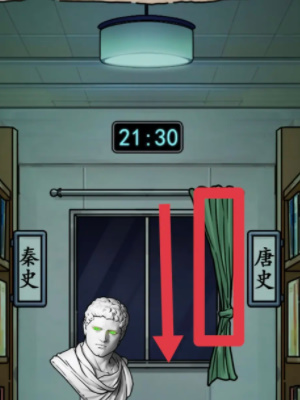 4、不做任何选项,下滑窗帘然后把地上的布放到雕像上面盖住雕像的眼睛,然后选择去其他地区。