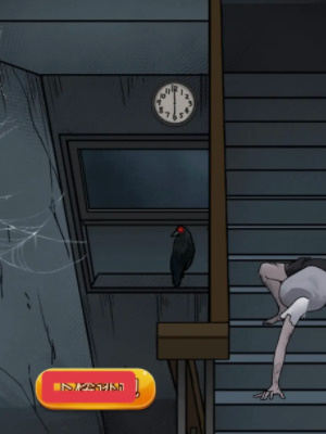 5、来到楼梯这里之后找到诡异点:倒地的女生、天黑了、墙角的蜘蛛网、粗糙的墙面,打开玻璃找到红眼乌雅,移动地下报纸找到掌印。
