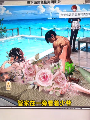 5、选项我们选择嫁给少爷,然后下一个场景三人的位置分别是:少爷拖到沙发上、管家拖到右上角阴影中、小姐拖到椅子阴影中。