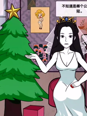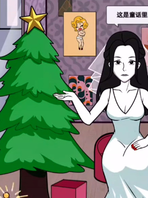 4、还有圣诞树上面的纱巾也给女生带上,然后拖动剪刀进行修剪裙子。
