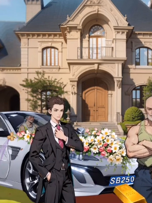 4、再换一个霸气的车牌号,把金条给司机换成一个帅气的服务生。