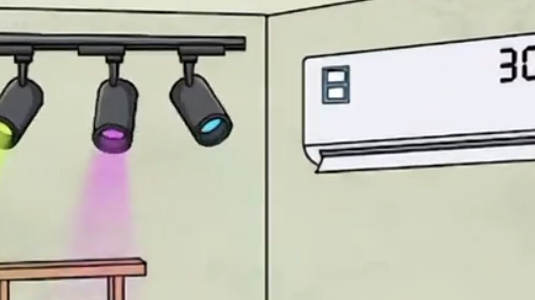 3、找到桌子上面的桌子上的电饭煲、屋顶的霓虹灯、墙上的空调。