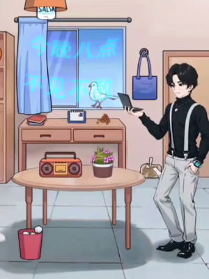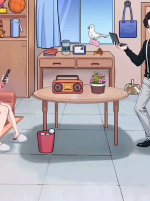 2、然后点击男友手上的手表发现有留言,点击桌子上面的饲料瓶子引来鸽子送来情书。