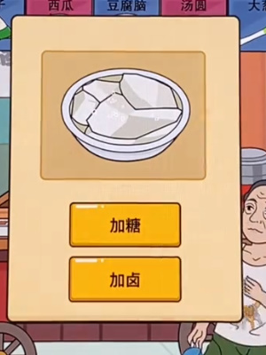 1、首先第一个顾客是一位大爷,然后给他一份加糖的豆腐脑。