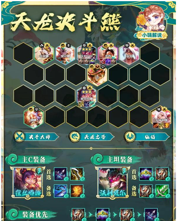 金铲铲之战S11赛季天龙决斗熊是一个比较强势的阵容,很多玩家都想知道天龙决斗熊要怎么搭配与运营,下面一起来看看吧。