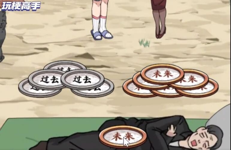 1、玩梗高手桥洞一家人需要拖动过去和未来到物品上。