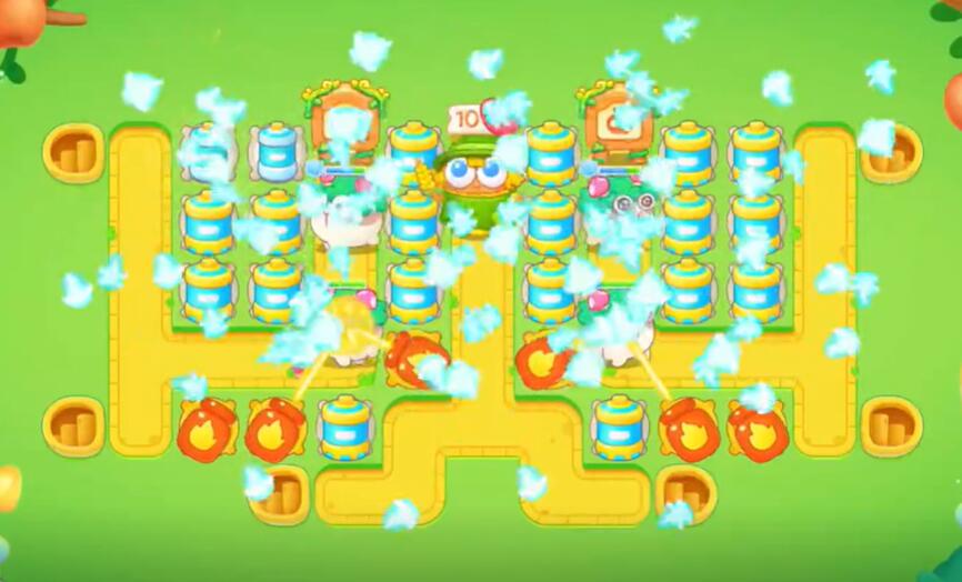 2、在中间建造两个喷火器,清理障碍物并且对兔子进行攻击。