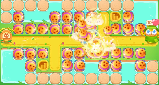 2、之后我们就清理道具获得位置,然后继续放置保龄球,同时也把陆地上道具打掉拿到全清,水中的浮板及时清理。