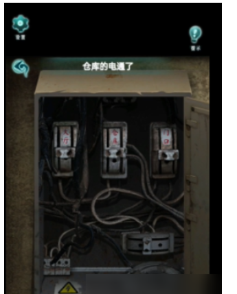 14、点击饭店的电闸,将保险丝装进去,打开仓库的电源,进入仓库,点击杂物区中的饭店海报。