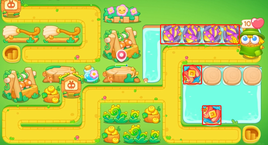 2、等水中的浮板多了,我们继续放置鞭炮,然后开始向左边清理道具,并且放置鞭炮增加还伤害。