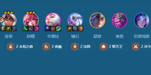 3、亚索如果先阿狸一步到3星,优先升人口补出5莲华,千珏带蓝霸符过渡给辛德拉,4阶段如果要锁血,得搜2星辛德拉,如果是虐菜局,1星辛德拉继续划水上9找瑟提,如果有灵魂莲华转,可以不依赖瑟提,直接给3星德莱厄斯,提前开出7莲华羁绊。