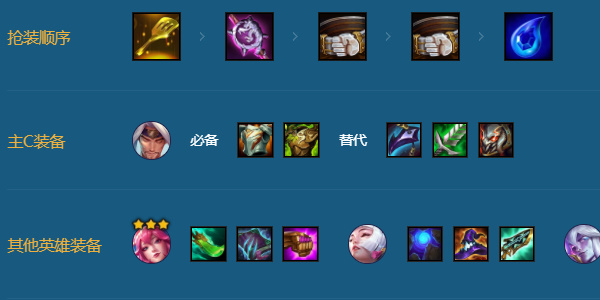 1费连败阵容,2阶段选秀有优先选择权,抢铲子>贵的,有铲子直接找莲华转,没有则亚索阿狸装备对半做,辛德拉的蓝霸符不急,中期来水滴可以让千珏带着,后面再过渡给辛德拉。