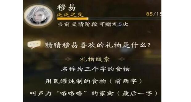 射雕手游穆易喜欢什么礼物?送哪些礼物好感度高?很多玩家都不太清楚穆易要怎么送礼,下文一起来了解一下吧。