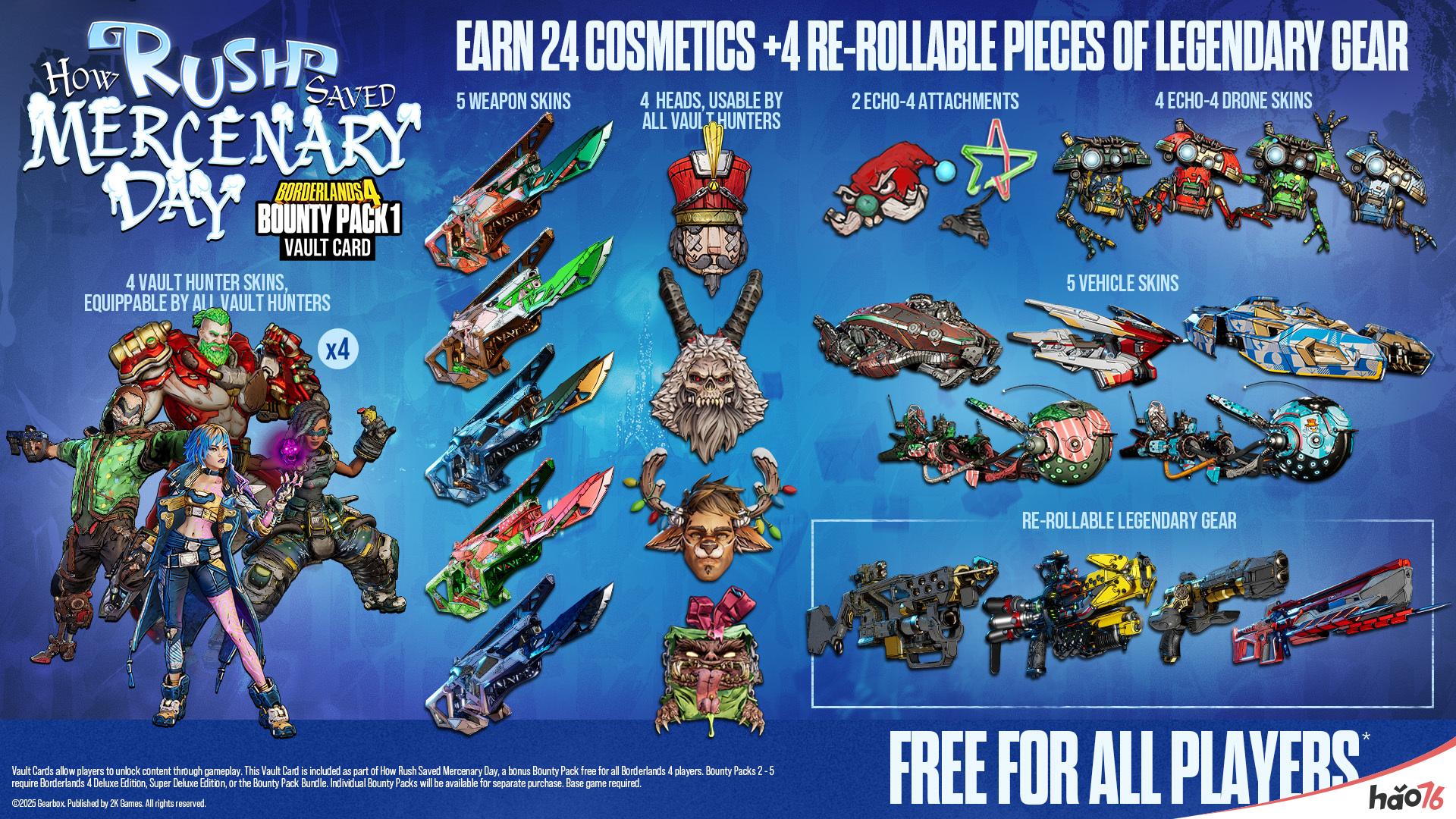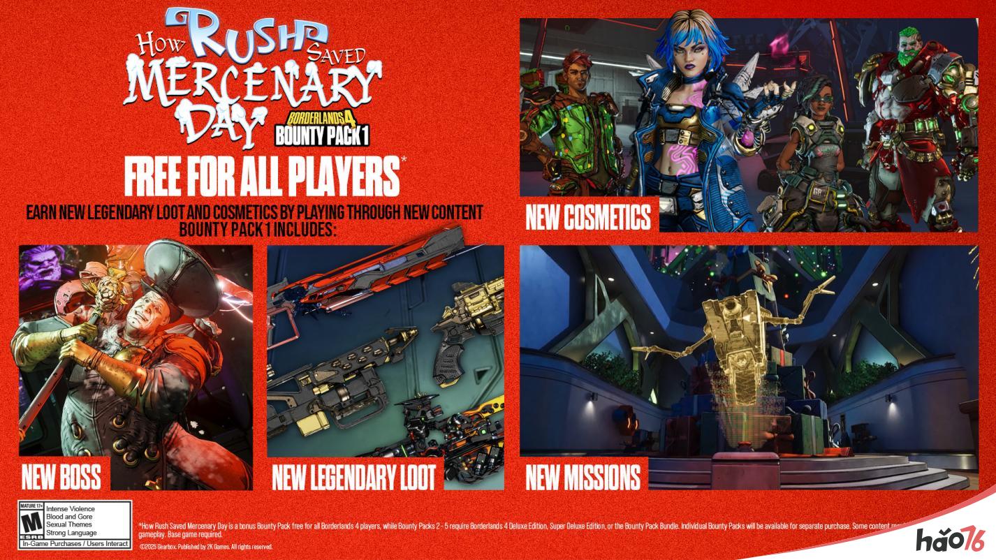 除了将首个赏金包免费提供外,2K 和 Gearbox 还将额外增加一个全新的、第五个赏金包,这意味着玩家可以在未来一年里期待凯洛斯星上更多的狂欢。已购买赏金包捆绑包的玩家,将可免费获取新增的第五个赏金包。豪华版、超级豪华版或赏金包捆绑包的所有者仍将照常获得四个付费悬赏包(悬赏包2、3、4和5),而现在所有玩家均可免费获得首个赏金包。* 关于更多未来赏金包发布时间与内容的详情,将在后续公布。
